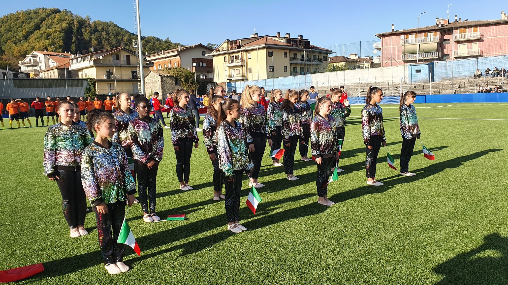 Dopo il taglio del nastro per l’inaugurazione dello Stadio post lavori, una sfilata di colori dalle bandiere nazionali alle ragazze ponpon e tantissimi giocatori vecchie glorie che hanno poi dato vita ad una amichevole con la squadra del Vaticano – Bambino Gesù.