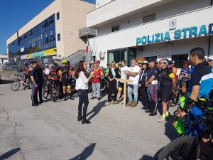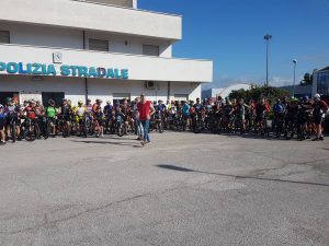 Carsoli – Questa mattina presto nel piazzale antistante la sede della Polizia Stradale hanno trovato accoglienza e raduno una marea di ciclisti della Polizia e appassionati del settore che hanno dato vita ad una ciclotraversata a due ruote da Carsoli e fino al Santuario della Santissima Trinità. Nella mattinata i ciclisti della Polstrada saranno accolti al Santuario dal rettore ove sarà celebrata in forma solenne una Santa Messa. Una iniziativa intrapresa dal settore ciclistico della Polizia, che ha voluto in pratica racchiudere intorno ad un comune denominatore, sport, sicurezza, fede e celebrare lo spirito agonistico in uno dei luoghi più suggestivi e sentiti in termini di fede e devozione. Tanta voglia di stare insieme dunque all’aria aperta e testimoniare i valori dell’aiuto reciproco e della fratellanza, questa l’introduzione di un rappresentante dei ciclisti, che ha dato il via a questa bella manifestazione patrocinata dal Ministero dell’Interno e realizzata con la collaborazione dell’Associazione Nazionale Polizia. Presente alla partenza della ciclotraversata il Comandante della Polstrada di Carsoli Paolo Prosperi, il Sindaco di Carsoli Velia Nazzarro con il Presidente del Consiglio Lorenza Muzi, la Polizia Locale ed altre rappresentanze istituzionali e religiose.