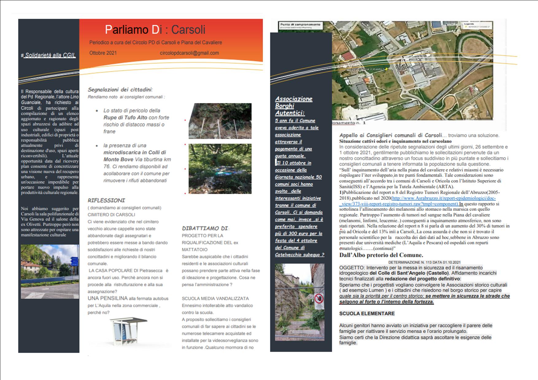 Comunicato Periodico Pd Ottobre 2021 Carsoli