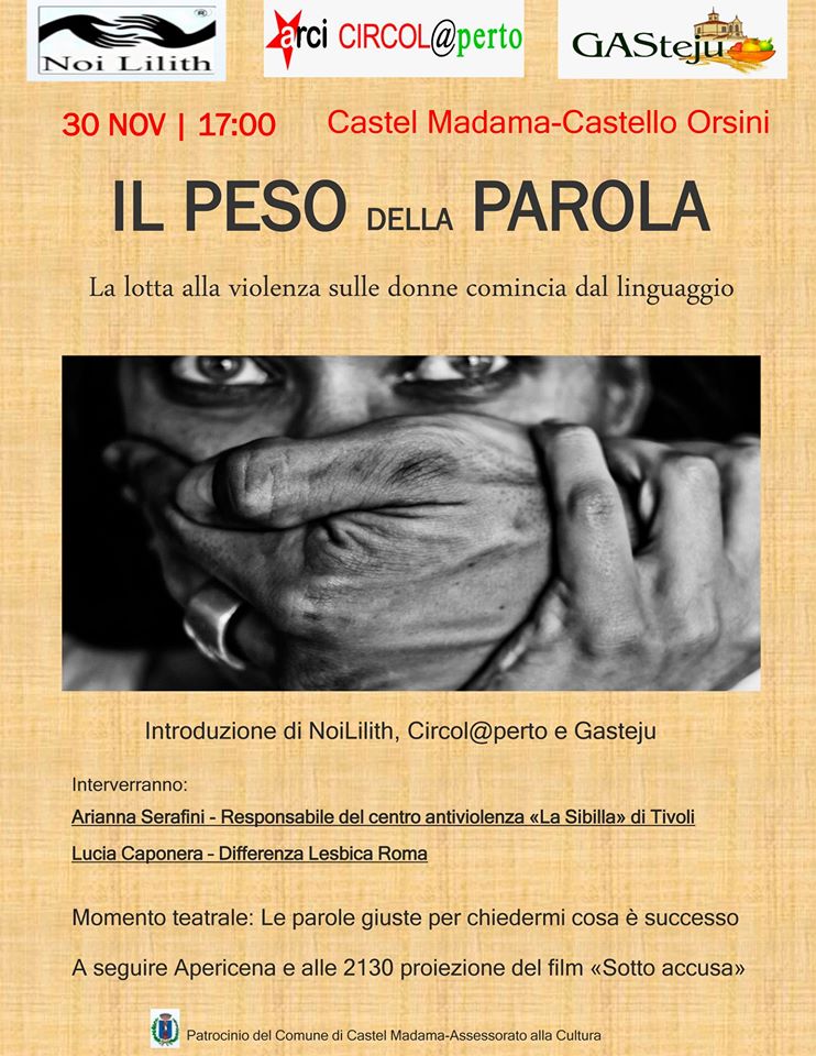 Castel Madama –  Interessante appuntamento a Castel Madama con  Circol@perto in collaborazione con le associazioni Noi Lilith e GASteju con il patrocinio del Comune di Castel Madama presentano oggi  un incontro sul tema della violenza sulle donne.- Parteciperanno Arianna Serafini del centro antiviolenza La Sibilla di Tivoli e Lucia Caponera di Differenza lesbica Roma.