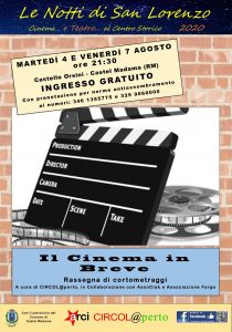 Castel Madama – Si è tenuta ieri sera, sotto il quadrato stellato del Castello Orsini a Castel Madama, il primo appuntamento de Il cinema in breve, rassegna di cortometraggi organizzata da CICOL@perto, Associak e Associazione Fargo, e inserita all’interno del programma di eventi culturali Le Notti di San Lorenzo.
