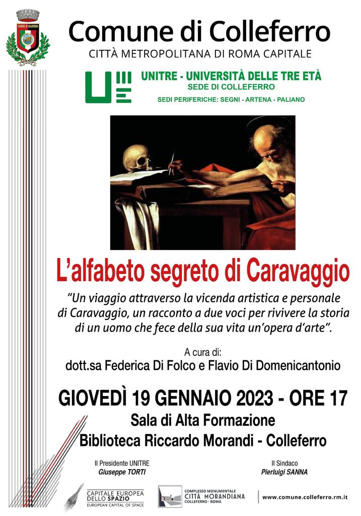 Colleferro – Giovedì 19 gennaio alle ore 17.00 a Colleferro, presso la Sala di Alta Formazione della Biblioteca Comunale R. Morandi, si terrà la lezione multidisciplinare “L’alfabeto segreto di Caravaggio”, a cura della docente di Storia dell’Arte, Dott.ssa Federica Di Folco, e dell’attore Flavio Di Domenicantonio.