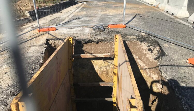 Guidonia Montecelio – Sono in corso di svolgimento i lavori di interessanti la tubazione presente nell’area dello sprofondamento di parte della pavimentazione stradale, sulla rampa in uscita sulla s.p. Nomentana Bis attualmente interdetta al traffico. Proseguono con lo scavo verso la provinciale per sostituire, almeno in quel tratto, la vecchia tubazione in cemento.