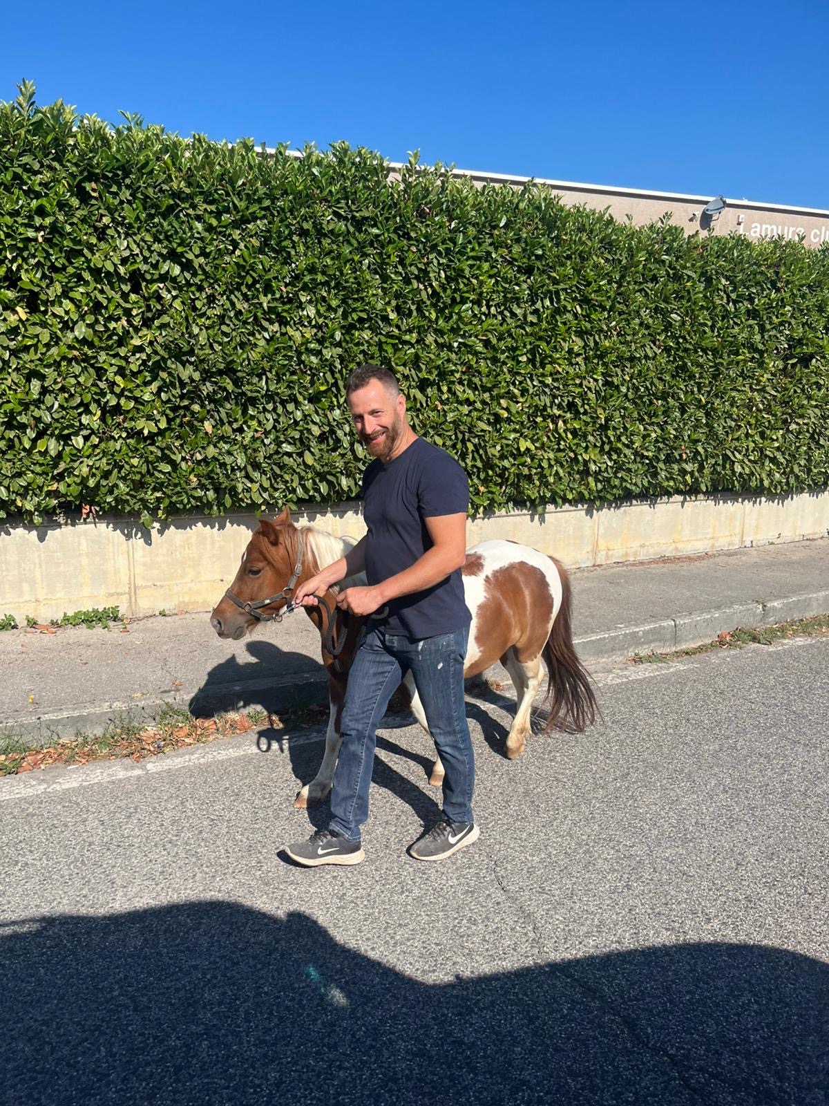 La prima volta che ho notato uno slancio evidente da parte di Girasole nei miei confronti é quando tornavo con la macchina a casa e lui la riconosceva. Notavo che appena mi vedeva correva veloce verso di me. Mi ha fatto sorridere. Inizialmente ho riscontrato problemi anche tra il mio cocker ed il Pony, perché il primo si sentiva molto padrone del suo ambiente. Girasole si é fatto subito rispettare, ha un carattere forte ma é dolcissimo. Sono passati giorni, mesi ed anni. Ora vanno d’accordo nella maggior parte dei casi anche se a volte si attaccano un po’. Ettore, il mio cane é geloso quando accarezzo Girasole, credo percepisca il nostro legame. Ad ogni modo il tempo ha creato un rapporto tra me e Girasole unico. É diventato un grande amico e soprattutto un maestro di vita. Mi riporta a vivere cose semplici e genuine oltre a darmi tanta serenità anche nelle giornate più difficili.Insomma penso proprio che non potrei stare più senza di lui-.