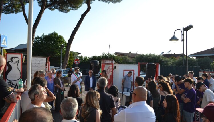 Tanti gli interventi che hanno preceduto l’inaugurazione della targa commemorativa, apposta all’ingresso del campo e accolta tra la commozione del pubblico. Dopo le parole del Sindaco Mirko Di Bernardo, intervenuti Rodolfo Mariotti, la Consigliera Paola Franzoso, il Consigliere Alessandro Cocco, la Consigliera Francesca Antonelli e Alessio Conti.