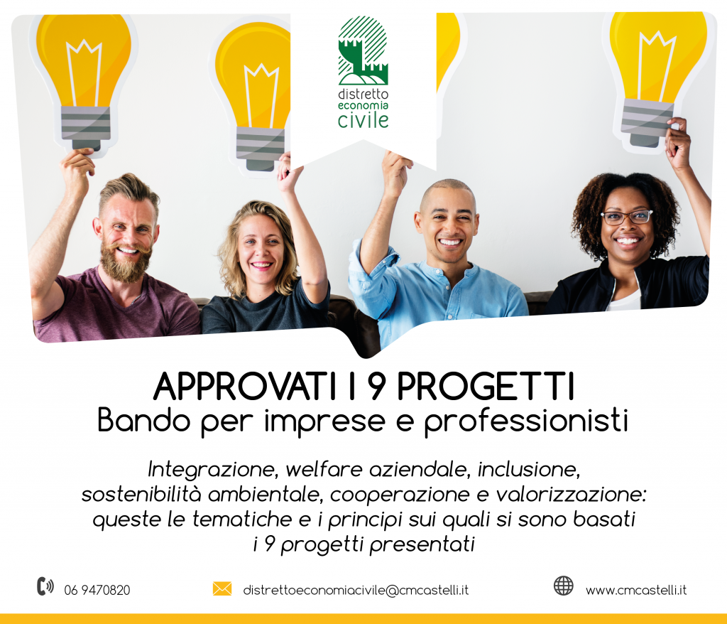 Comunità Montana Castelli Romani e Prenestini – Si è chiuso a Febbraio 2021 il bando del Distretto dell’Economia Civile della Comunità Montana Castelli Romani e Prenestini destinato alle imprese profit e no profit che si sono particolarmente distinte per l’approccio di equità e sostenibilità.