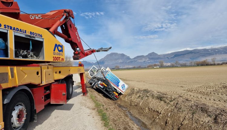 Avezzano – Un mezzo particolarmente pesante, il camion gru andato fuoristrada ed abbandonato dai ladri nella Piana del Fucino di proprietà della Alessandro Arcangeli Store di Carsoli. Per il recupero del mezzo adagiato su un fianco della cunetta stradale c’è voluta la protezione civile, unitamente al servizio di soccorso stradale qualificato Autofficine Ceriv di Carsoli Oricola. Stando alla ricostruzione dei fatti i ladri ben organizzati si sono introdotti all’interno di un deposito della affermata azienda di distribuzione materiale edilizio in via Roma a Carsoli e sono riusciti a rubare il camion gru, facendo perdere le proprie tracce. Poi in serata il tamtam mediatico per la ricerca del mezzo che conteneva una molteplicità di scritte aziendali e per cui non passava certo inosservato. Restano attive le indagini, perchè i ladri attraverso le telecamere di videosorveglianza potrebbero essere presto rintracciati.