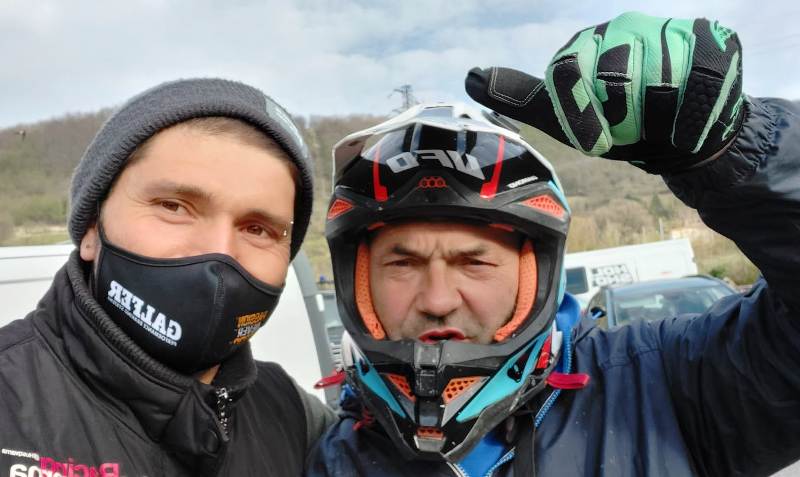 (Daniele Rossi insieme a Mario Rinaldi, pluricampione mondiale di enduro e responsabile del percorso)