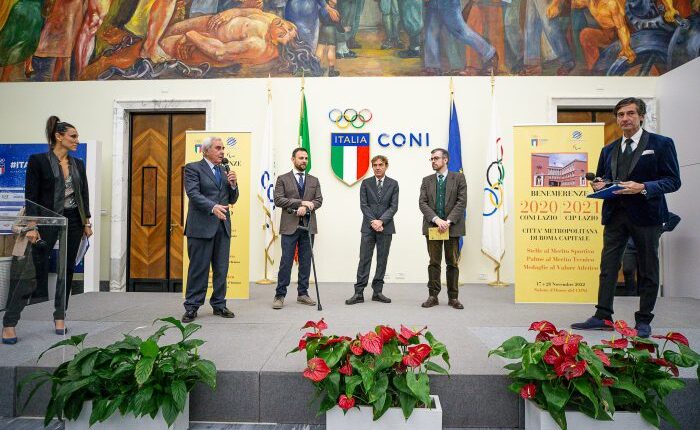 ROMA – Si è svolta presso il Salone d’Onore del CONI la Consegna delle Medaglie al Valore Atletico a dirigenti, tecnici ed atleti che si sono distinti nel corso del 2020 e 2021. Alla cerimonia ha preso parte il Vicesindaco della Città metropolitana di Roma Capitale, Pierluigi Sanna, assieme al Presidente del Coni Giovanni Malagò, al Presidente del Comitato italiano paralimpico Luca Pancalli, al Presidente del Comitato Regionale Coni Lazio Riccardo Viola, al delegato allo Sport per la Regione Lazio Roberto Tavani.