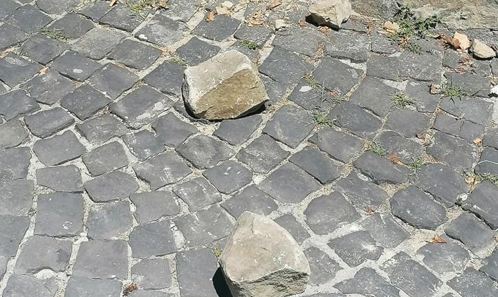 Carsoli – Proseguono le azioni scriteriate di lancio delle pietre dal Belvedere del centro storico di Carsoli. Un fatto già segnalato a suo tempo e che sta generando una seria situazione di pericolo per chi vive nella zona di via Spiagge Castello-via Scarcella. Un problema serio che deve essere attentamente valutato e per il quale va posto un rimedio.