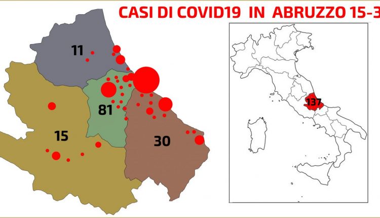 L’Aquila. Resta difficile la situazione sulla costa Abruzzese. Sono più di 80 i casi registrati nella Provincia di Pescara. In Abruzzo, dall’inizio dell’emergenza, sono stati registrati 137 casi positivi al Covid 19, diagnosticati dai test eseguiti nel laboratorio di riferimento regionale di Pescara.