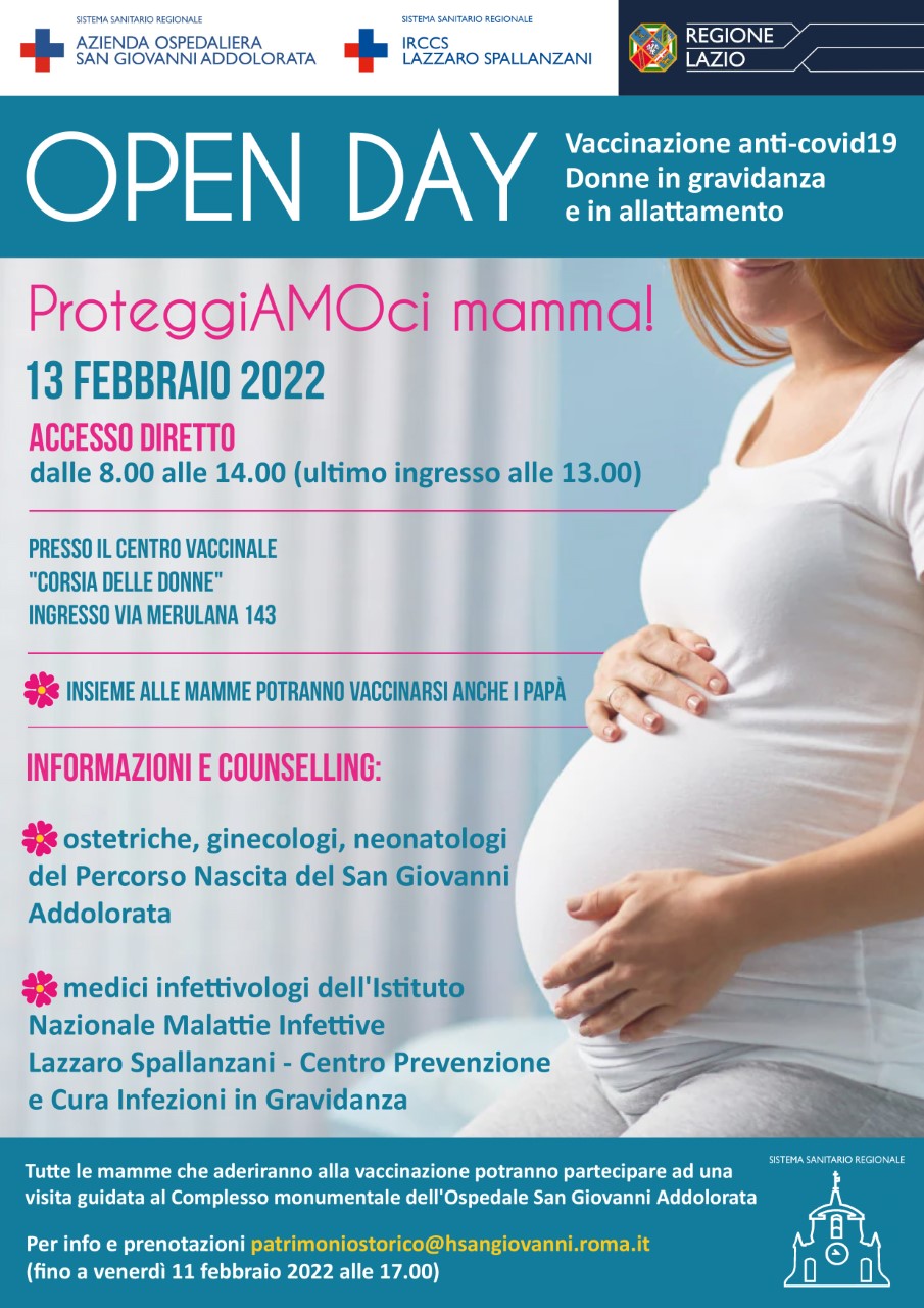 ROMA – Domenica 13 febbraio, presso il Centro vaccinale “Corsia delle Donne” dell’AO San Giovanni Addolorata, si svolgerà l’Open Day per la vaccinazione anti-covid dedicato a tutte le donne in gravidanza e in allattamento.