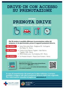 In caso di esaurimento dei posti disponibili nei drive in nella data prescelta è sempre possibile rivolgersi alle altre postazioni della rete regionale in libero accesso. L’elenco completo dei drive in della Regione Lazio su: https://www.salutelazio.it/elenco-tamponi-drive-in