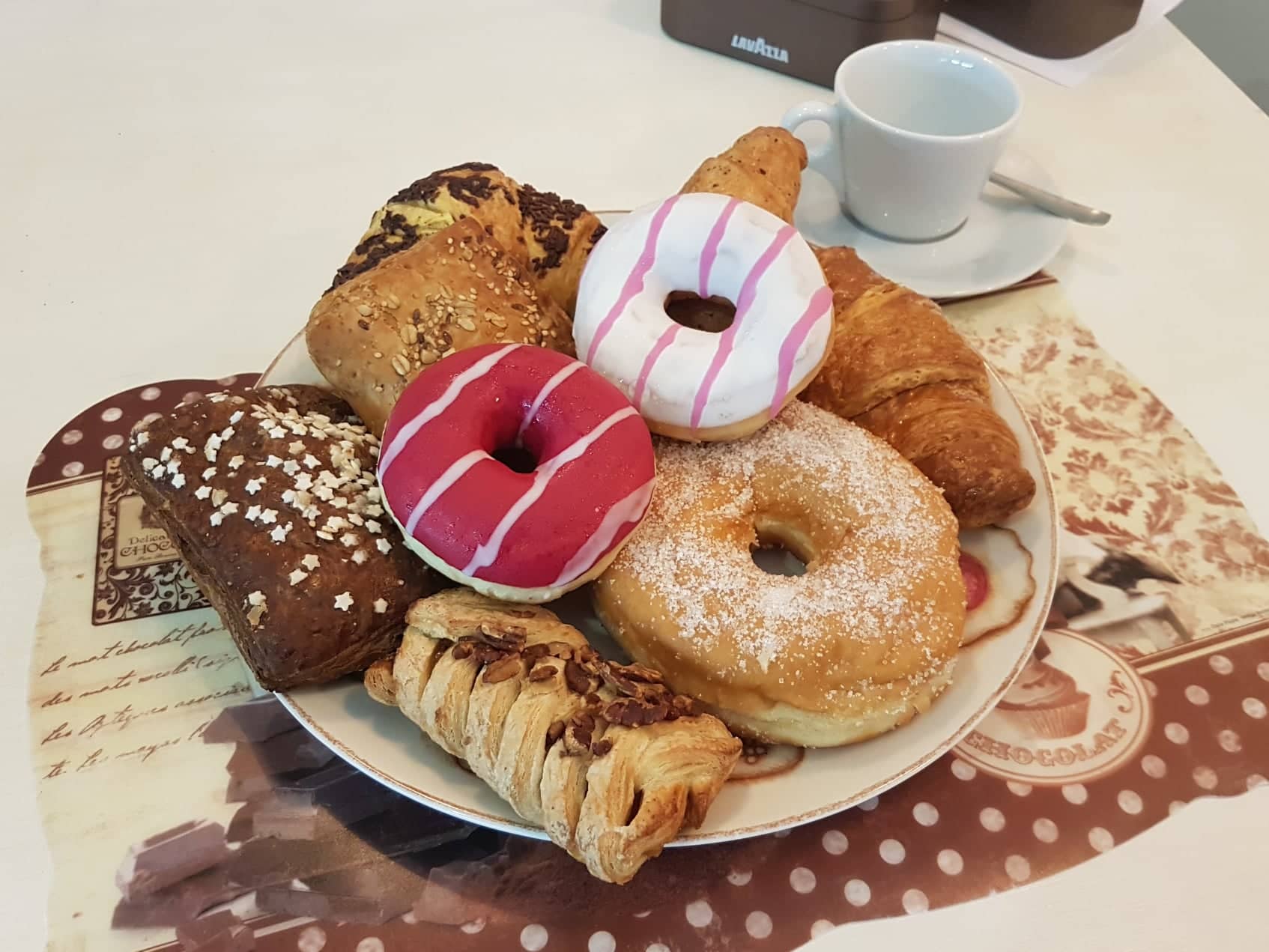 Grande attenzione è anche dedicata alla prima colazione, momento fondamentale della nostra giornata da iniziare con una ghiotta brioche ed un caldo cappuccino. Ad oggi le esigenze sono diverse e da Crema & Cioccolato si può scegliere tra diversi tipi di cornetti, dal semplice classico senza pretese a quello integrale, il vegano, il ripieno con crema di nocciola, il cornetto farcito con cioccolata (a richiesta) maritozzi con panna, per spaziare poi dalle dolci trecce di sciroppo d’acero e noci alle soffici bombe e ciambelle rigorosamente al forno. Tutto ciò accompagnato da un caffè di alta qualità, di una nota azienda d’esperienza pluridecennale, un espresso con note di cacao e pepe nero, oppure gustare un Ginseng Gluten Free. Per le fredde serate d’ inverno propongono una vasta gamma di cioccolate calde e tè aromatizzati da accompagnare, perché no, con della piccola pasticceria. Per concludere la varietà di servizi offerti  si aggiungono delle gustose Crepes farcite con cioccolata, marmellata ecc.
