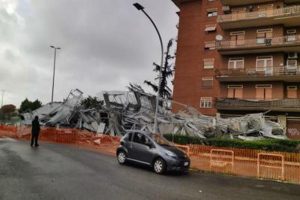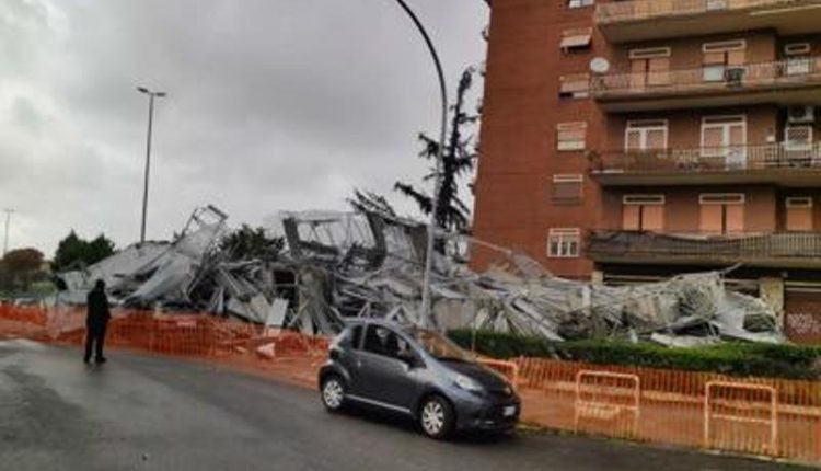 Roma Est – Forte paura nella zona est della capitale: un ponteggio di otto piani è crollato nella notte in via Fadda, in zona Don Bosco a Roma.