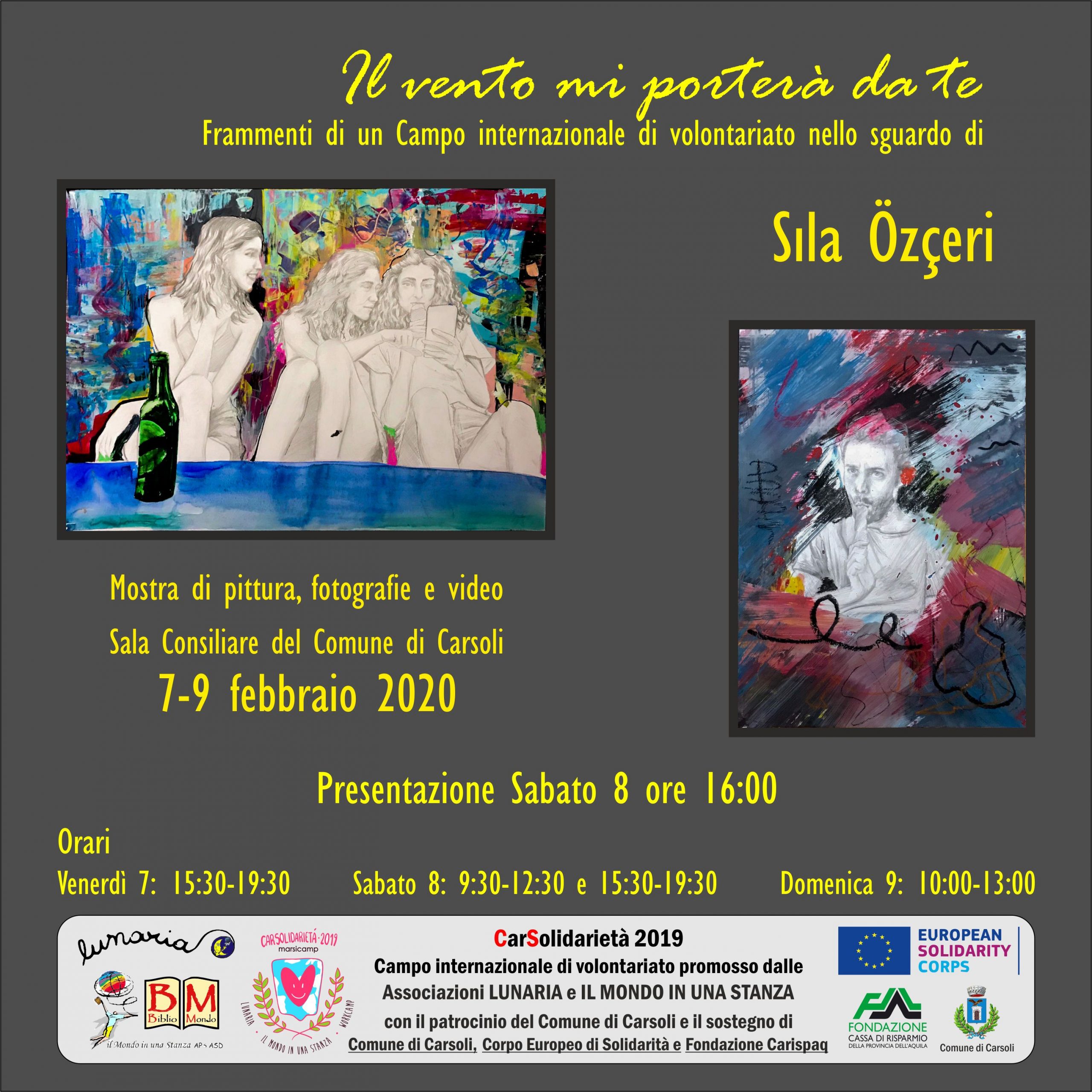 Carsoli – Sarà presentato il prossimo 8 febbraio 2020 alle ore 16.00 il libro dal titolo: “Il vento mi porterà da te”, dell’autrice Sila ÖZÇERI. L’appuntamento con la cultura è presso la sala Consiliare del Comune di Carsoli. Il tutto con la cornice di una mostra di pittura che sarà ospitata nella sala consiliare del Comune di Carsoli dal 7 al 9 febbraio. La mostra è un’appendice del campo internazionale di volontariato che abbiamo ospitato nello scorso agosto