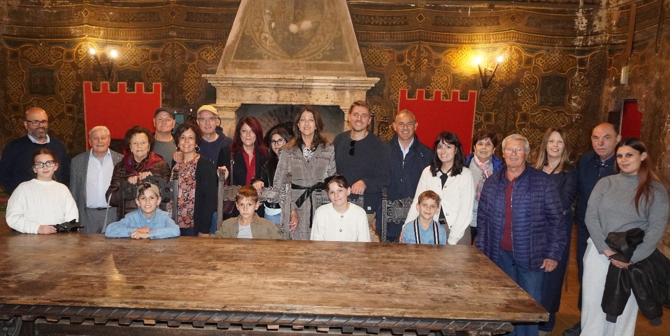 Una giornata carica di emozioni, l’incontro con le famiglie Villa e Fantauzzi, la visita al Castello e l’accoglienza in Comune, dove il Sindaco ha consegnato loro una pergamena a ricordo della preziosa testimonianza che Rocco ha lasciato alla nostra comunità, ha rappresentato per la famiglia un’occasione per ricostruire quei legami interrotti dal tempo e dalla distanza.