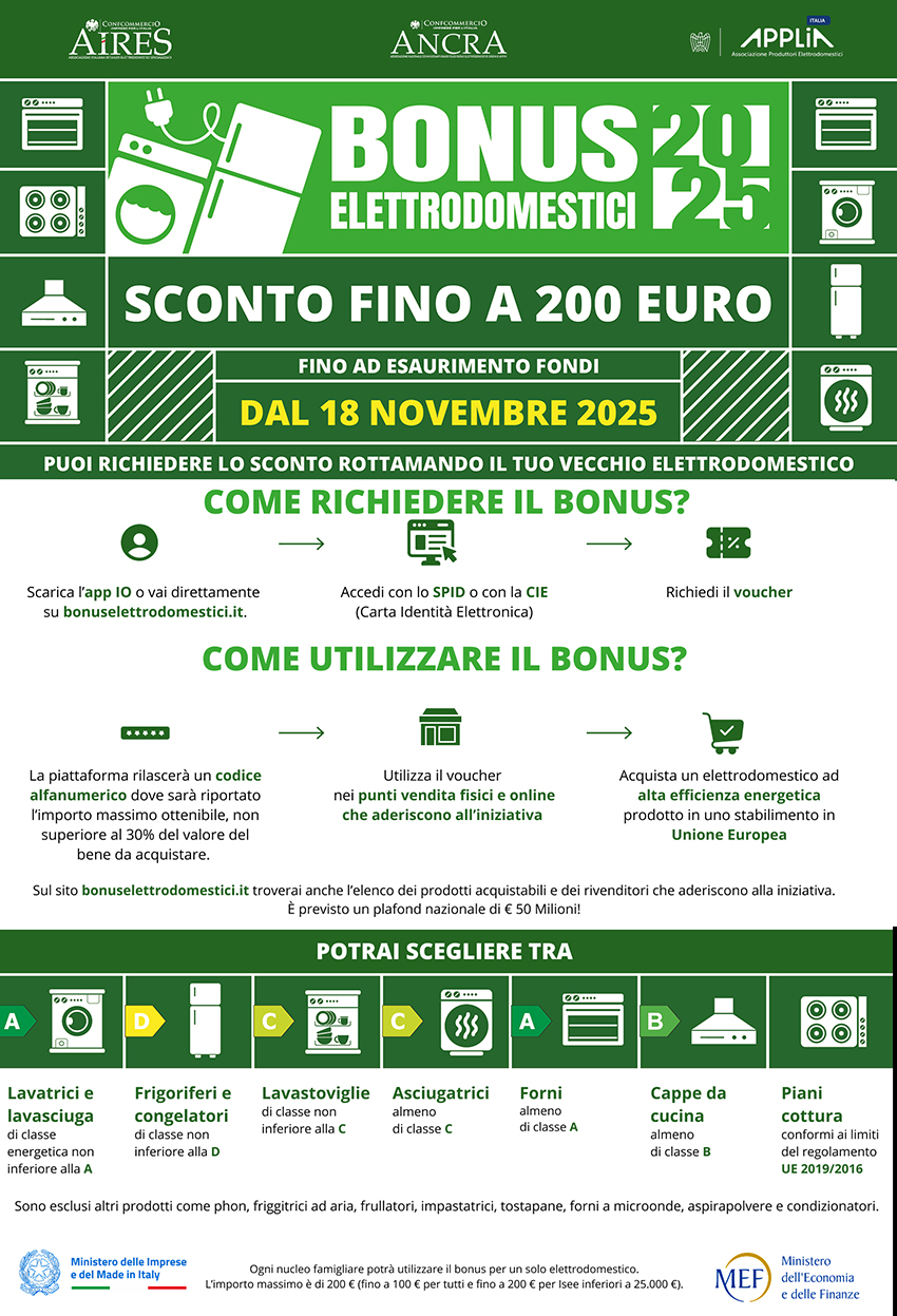 “Il Bonus – spiega Ilaria Imperiale owner di Euronics – consiste in un contributo erogato sotto forma di voucher, destinato all’acquisto di elettrodomestici energeticamente efficienti da parte di utenti che sostituiscono apparecchiature obsolete. L’obiettivo è favorire il risparmio energetico e promuovere il corretto smaltimento dei vecchi apparecchi”.