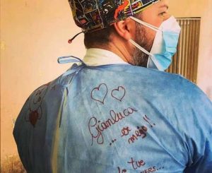 E di qui anche il clima negli ambienti dove si tutela la salute, seppure con le dovute prescrizioni, riesce sempre strappato un sorriso che non si vede dalla bocca ma che si percepisce dagli occhi. Ed ecco che pennarello rosso alla mano, sono stato le pazienti a firmare questa volta non più ‘gessi ma i camici del loro infermiere preferito, in questo caso Gianluca.