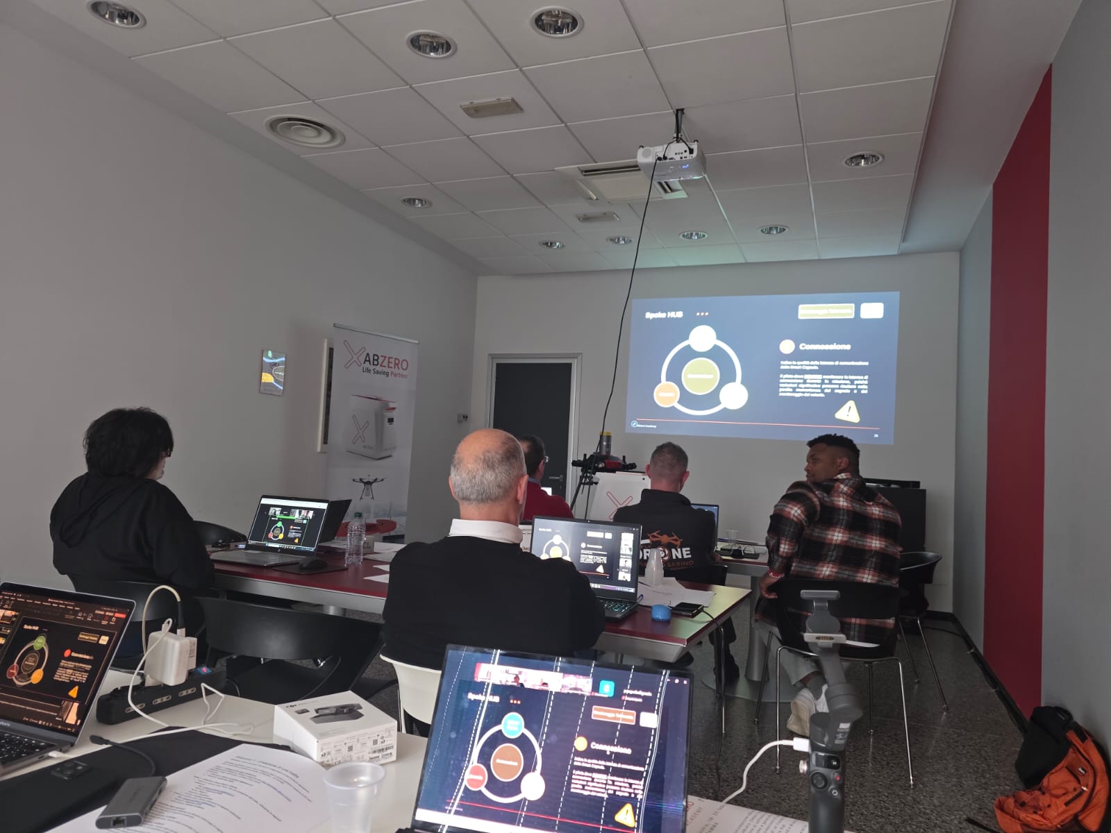 Il programma del 1° Ciclo ABzero Academy ha coperto, nell’arco di due intense giornate full immersion, tutti gli aspetti operativi e tecnici del sistema: dall’introduzione alla piattaforma ABzero e al software Spoke per la gestione delle missioni, alla gerarchia degli utenti, dai flussi operativi per la creazione di una tratta aerea all’utilizzo di Q-Ground e Mission Planner, fino alle simulazioni di volo, alle checklist operative e alla condivisione di esperienze pregresse sul campo.