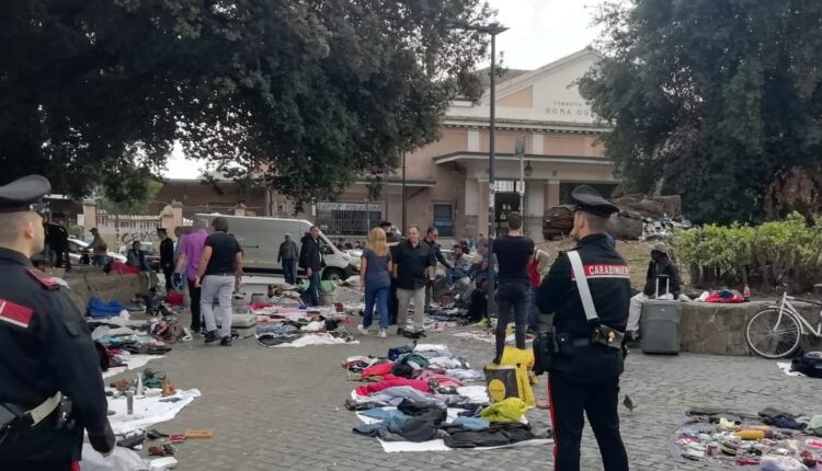 Ad esito delle attività, sono state identificate 23 persone – tra cui diversi cittadini stranieri, senza fissa dimora e con precedenti – e elevata una contravvenzione, di 500 euro, per vendita abusiva, con il sequestro amministrativo di circa 300 kg di merce varia – indumenti e utensili -, poi rimossi da personale dell’azienda AMA, intervenuto sul posto.