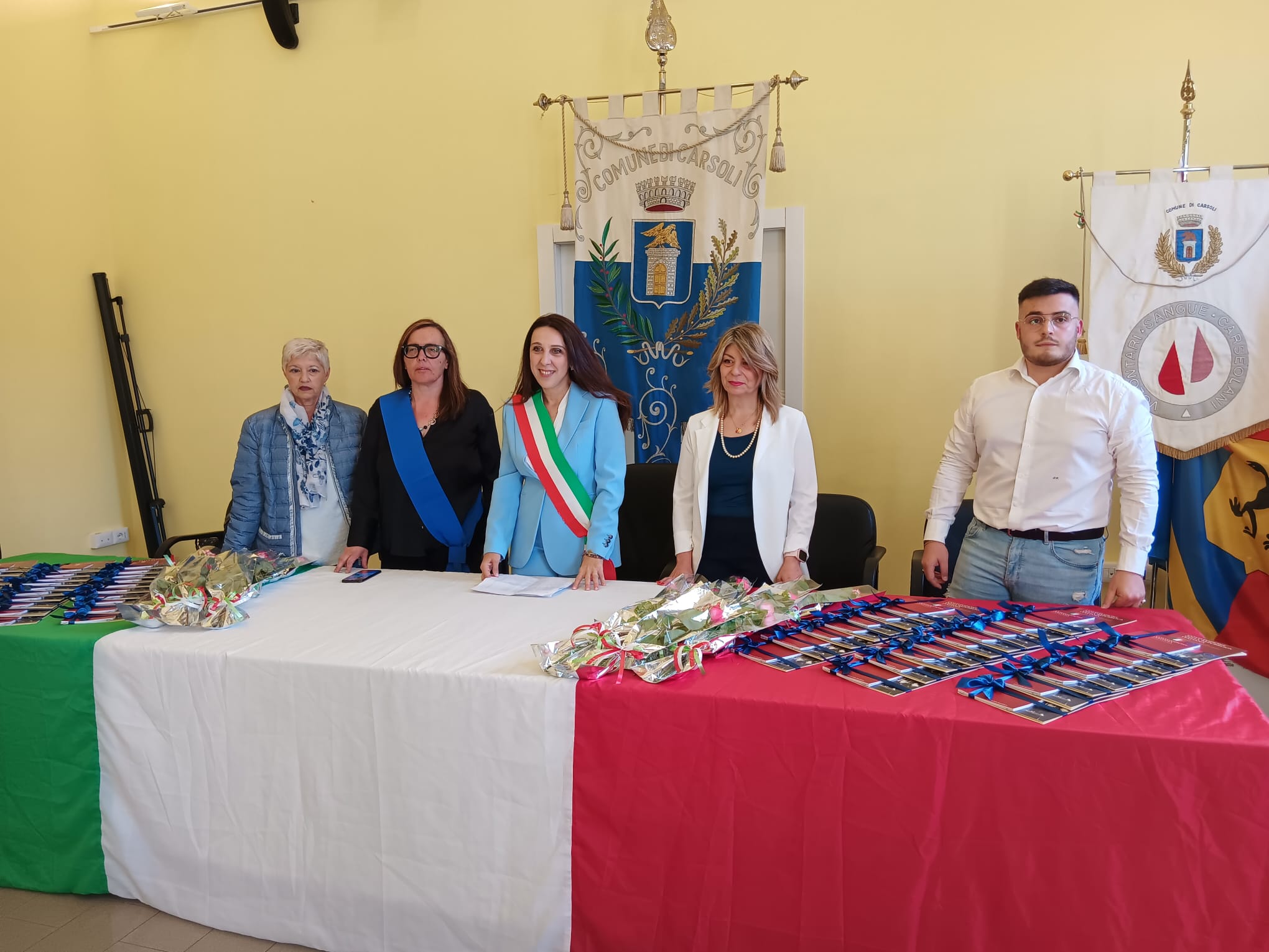 CARSOLI  – Partecipata cerimonia in sala consiliare oggi a Carsoli, l’amministrazione comunale ha consegnato copia della costituzione ai ragazzi che quest’anno festeggiano 18 anni, quindi la maggiore età. La classe 2006  è stata accolta dal sindaco Velia Nazzarro, dal vice Gasperina Tozzi, dal presidente del consiglio Chiara Cimei e dai consiglieri Raffaella Girlando e Luigi Ciccosanti.