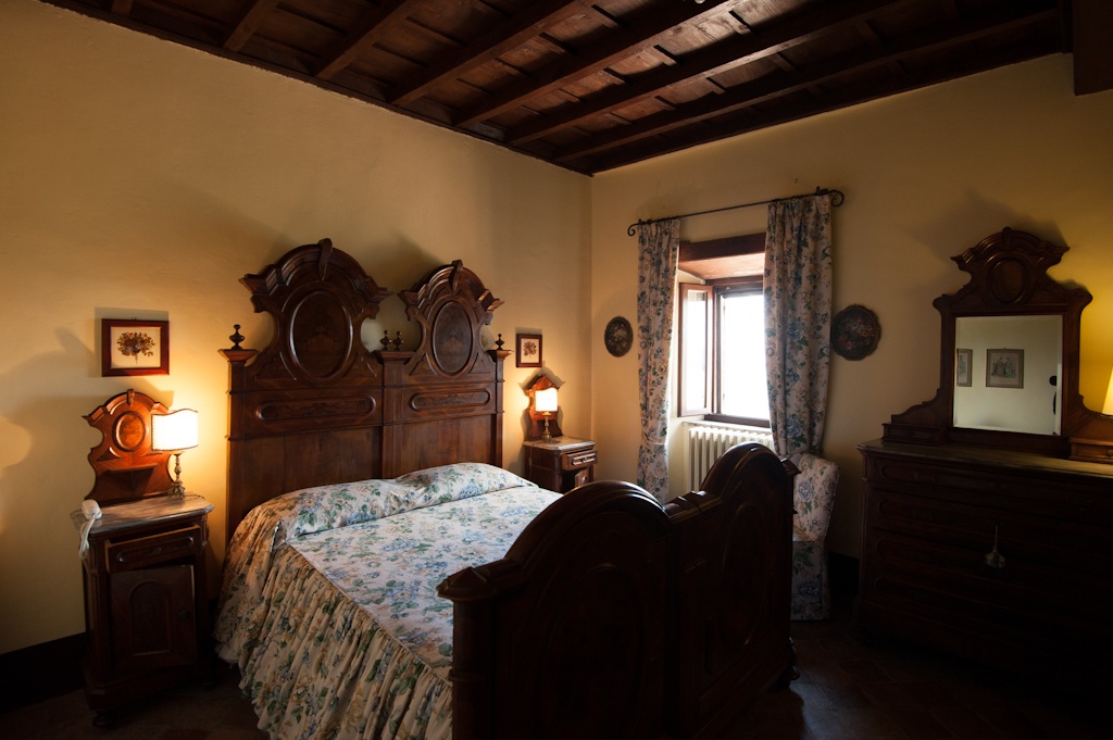 Le finestre – lunghe e strette, o piccole e rettangolari, poste in maniera asimmetrica – ben evidenziano il nucleo medioevale dall’ampliamento e caratterizzano la parte più antica protesa verso sud; sono composte da comici in arenaria grigia e calcare compatto. I portali, in materiale lapideo a cornice semplice scanalata, sono 3 e inquadrano le varie porte di accesso. L’ingresso alle cantine, il cui portone ha le chiodature originali, conduce anche ai magazzini e alla dispensa. Il portale principale è fornito, in chiave, di stemma gentilizio rappresentante una colomba con ramoscello d’ulivo su 3 monti e una stella a 8 punte fuori scudo, stemma della famiglia Latini.