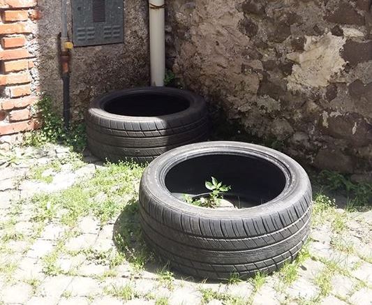 Stigmatizzato il gesto dell'autore, l'indignazione corre per il lungo lasso di tempo in cui stazionano gli "pneumatici" in disuso.