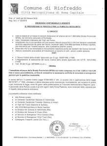 Riofreddo – Con provvedimento del Sindaco Giancarlo Palma è stata ordinata ufficialmente la chiusura della Strada Provinciale di accesso verso il Comune di Riofreddo. Il tratto intercluso è stato interessato nel pomeriggio odierno dalla caduta di un grosso masso che ha invaso la carreggiata e che ha rischiato di provocare una tragedia. Fortuna ha voluto che in quel momento nessuno si trovasse in transito. Per consentire dunque la rimozione del grosso macigno che ha provocato anche una buca nella sede stradale, e per proseguire nella messa in sicurezza preventiva la strada di accesso (che è tralaltro quella principale) è stata CHIUSA fino a nuova ordinanza di revoca. Pertanto chi deve recarsi a Riofreddo dovrà passare per la strada di Vallinfreda, Vivaro Romano, Turanense e quindi da Carsoli. E’ stato quindi disposto il transennamento della strada che però è stato comunque ed inopportunamente aperto da qualche automobilista per transitare comunque. Si ricorda che transitare in una strada interclusa costituisce reato oltre al rischio di essere nuovamente investiti da massi in caduta a causa delle copiose precipitazioni odierne. Quindi val bene la pena fare qualche chilometro in più ma restare in sicurezza per se stessi e per gli altri.