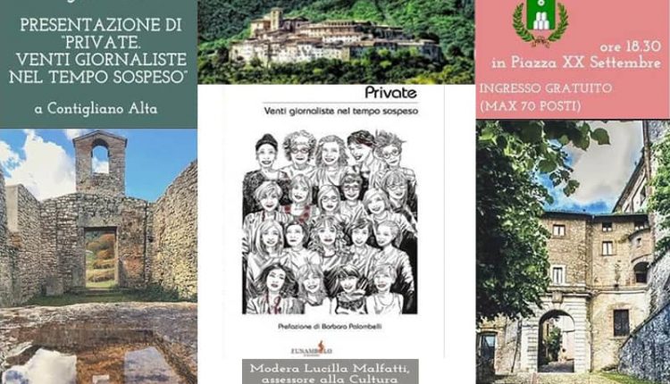 Contigliano – Domenica 2 agosto il bellissimo centro storico di Contigliano accoglierà quello che per molti versi è definito l’evento letterario dell’estate 2020, nell’ambito della rassegna “Sere d’Estate: la presentazione del libro “Private. Venti giornaliste nel tempo sospeso” (Funambolo Edizioni, 2020).