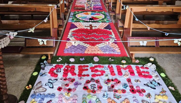 Donne di Oricola realizzano infiorata ad uncinetto con oltre seimila fiori multicolore!