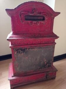 Nello spazio espositivo multimediale “Poste Storie”, aperto al pubblico nell’ufficio postale di piazza San Silvestro nella capitale, tra i numerosi oggetti, sono presenti infatti anche un’insegna in bronzo che campeggiava nei principali uffici postali abruzzesi negli anni ’50 del secolo sorso e una cassetta di impostazione utilizzata in Abruzzo negli anni ’40, molto deteriorata nella parte frontale inferiore ma riconoscibilissima nell’inconfondibile estetica delle cassette serie “Regie Poste”. Inizialmente di colore verde, nel tempo le cassette cambiarono sia nei materiali di costruzione sia nei colori, fino ad arrivare all’ormai iconico e classico rosso, sia nei “fregi” e negli stemmi riportati nella parte frontale che hanno contraddistinto i mutamenti storici e politici del Paese. Immobili, impiantate su marciapiedi o pareti, oppure in movimento, appese alle fiancate di tram e autobus, le cassette di impostazione accompagnano la vita degli italiani fin dalla fine dell’800, sopportando intemperie e scossoni ma anche fucilate, granate e bombardamenti.