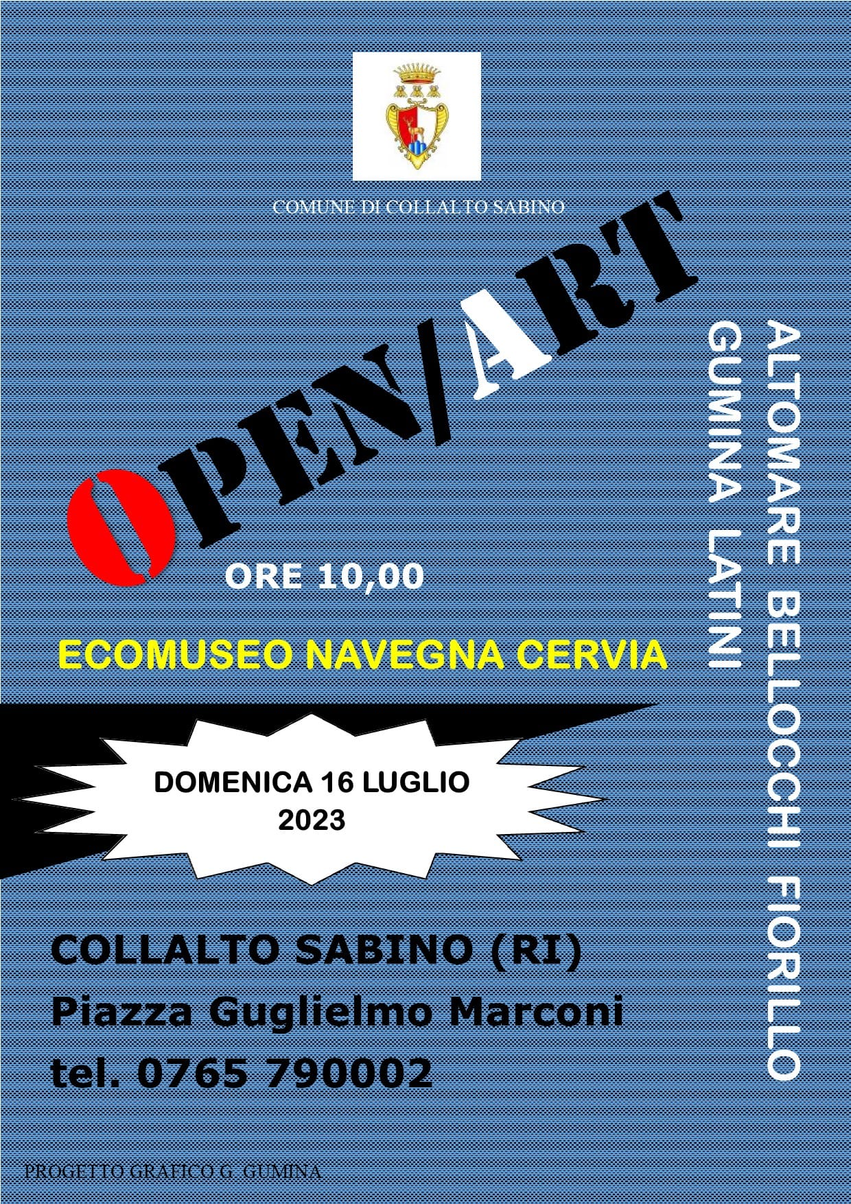 L’iniziativa espositiva, presentata da Gregorio Gumina e realizzata dal Comune di Collalto Sabino e dalla Riserva Naturale Regionale Monte Navegna e Cervia, propone le opere di Pippo Altomare, Clausia Bellocchi, Franco Fiorillo, Gregorio Gumina e Gianleonardo Latini, e’ l’occasione per coniugare l’Arte Contemporanea con l’Archeologia e promuovere allo stesso tempo le ricchezze del territorio collaltese.
