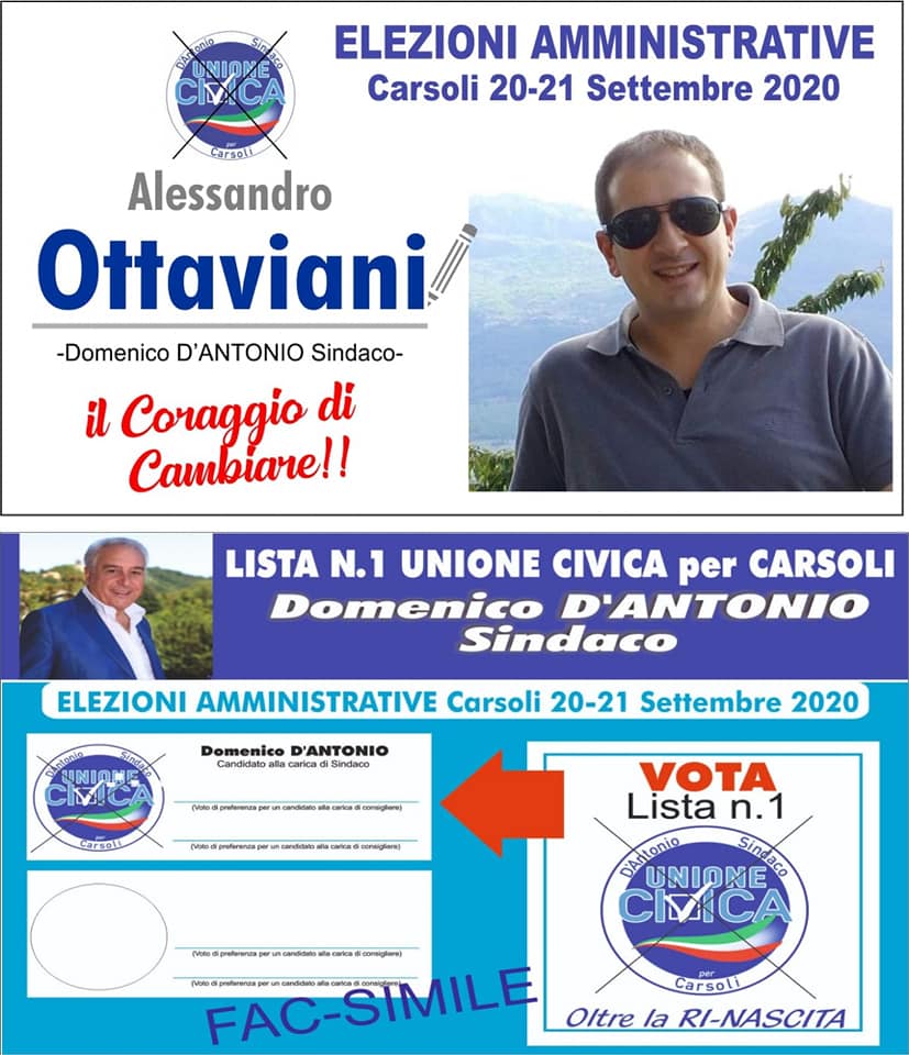 ALESSANDRO OTTAVIANI è candidato con la lista n. 1 “Unione Civica per Carsoli” candidato sindaco dott. Domenico D’Antonio
