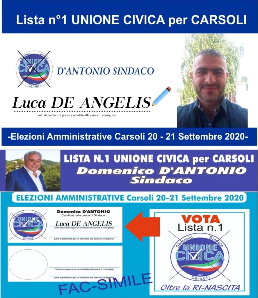 LUCA DE ANGELIS è candidato con la lista n. 1 “Unione Civica per Carsoli” candidato sindaco dott. Domenico D’Antonio