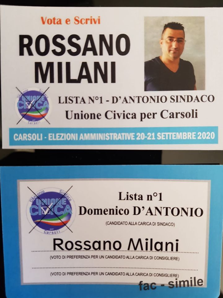 ROSSANO MILANI è candidato con la lista n. 1 “Unione Civica per Carsoli” candidato sindaco dott. Domenico D’Antonio