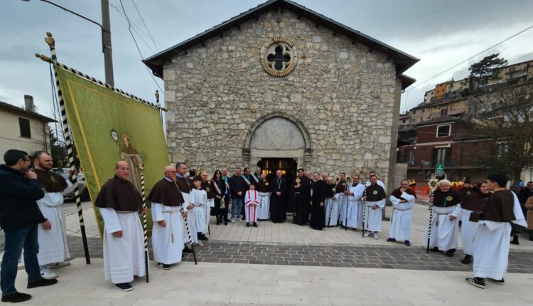 «L’arrivo a Scurcola di una nuova reliquia di San Bernardino da Siena – ha detto il presule nell’omelia – aiuti a mantenere viva la memoria del Santo e a far risplendere il suo insegnamento Cristiano. San Bernardino si distinse per la sua capacità oratoria che nasceva dal suo intenso rapporto con Dio. Per San Bernardino la preghiera era un elemento fondamentale della vita cristiana. Egli vedeva nella preghiera non solo un atto di lode e supplica ma anche un mezzo per rafforzare la connessione personale con Dio. La sua spiritualità era impregnata di un profondo amore per la meditazione e la contemplazione e incoraggiava i fedeli a pregare incessantemente affinché la preghiera diventasse una forma di vita quotidiana, capace di trasformare l’individuo e la comunità. La testimonianza di San Bernardino – ha concluso il vescovo – ci aiuti, soprattutto in questo tempo di Quaresima, a fare spazio a Dio e a ritagliarci ogni giorno un tempo di silenzio e di preghiera per poter rinvigorire il nostro legame con Lui».
