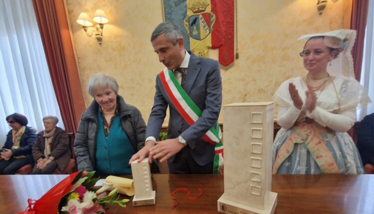 Alla cerimonia di consegna della riproduzione in travertino della Torre civica di piazza Matteotti hanno partecipato il Sindaco Mauro Lombardo, insieme ad assessori e consiglieri comunali. Il Sindaco ha letto le motivazioni dell’attribuzione del premio, riportate in una pergamena.