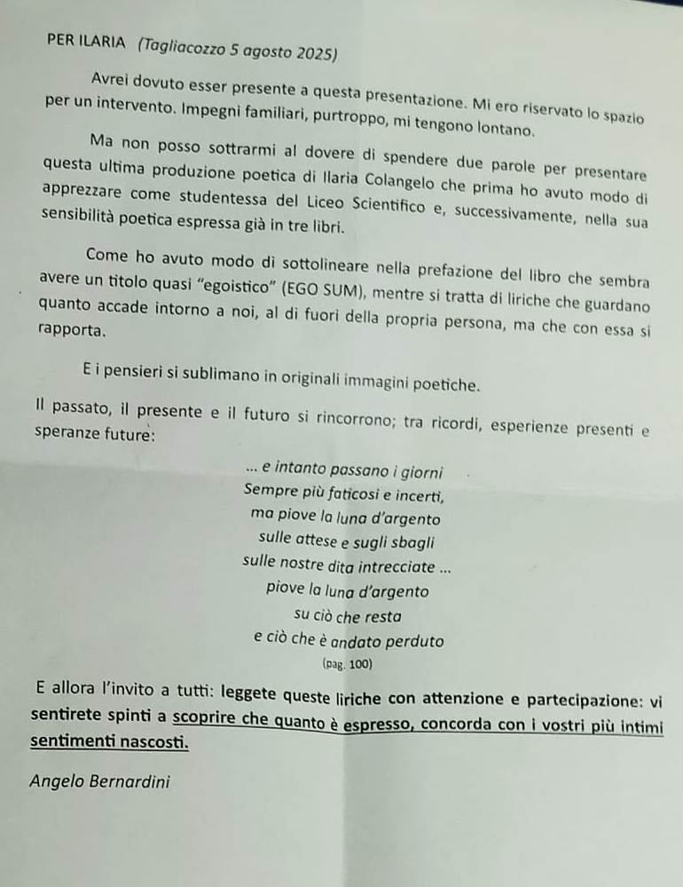 Emozioni forti con Ilaria Colangeli a Tagliacozzo: successo per le poesie di “Ego Sum – versi fuori onda”