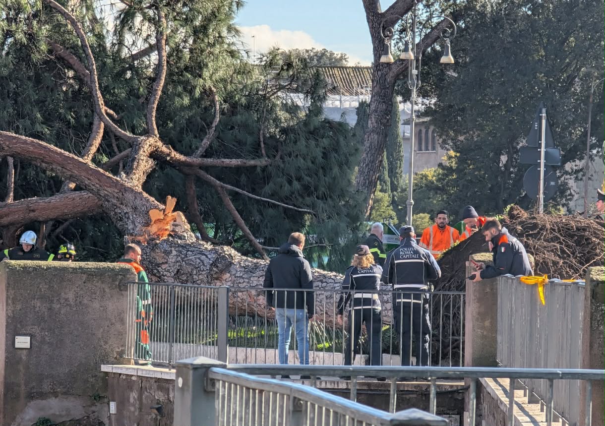 Enorme pino cade improvvisamente ai Fori Imperiali, feriti quattro passanti: paura a Roma