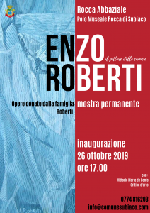 “Per la famiglia Roberti la collocazione stabile di alcune importanti opere di Enzo Roberti in una cornice prestigiosa come quella della Rocca Abbaziale di Subiaco, è motivo di orgoglio e soddisfazione; grazie alla proficua collaborazione con la giovane ed energica Giunta Comunale siamo riusciti a raggiungere questo importante obiettivo che valorizza l’opera di un pittore da sempre fortemente legato al suo paese natale.” Le parole di Carlo Roberti, figlio dell’artista.
