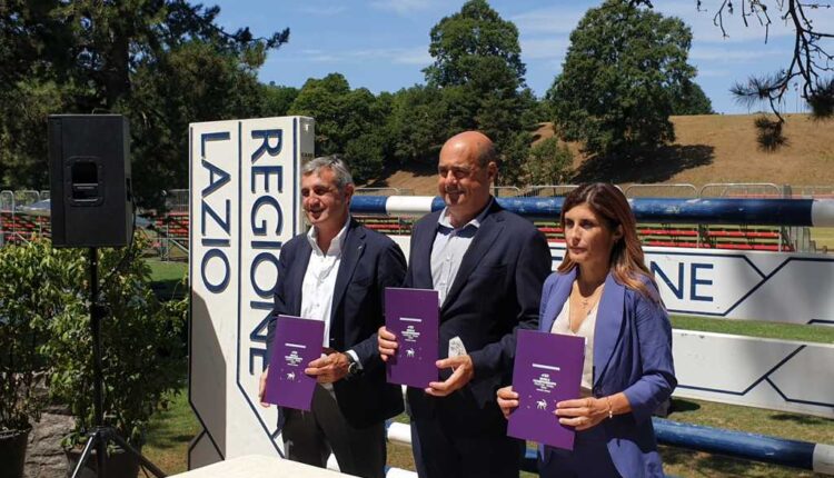 ROCCA DI PAPA (RM) – Riqualificare l’impianto equestre federale ai Pratoni del Vivaro che dal 15 al 25 settembre ospiterà i Campionati mondiali di sport equestri. È lo scopo del protocollo di intesa firmato oggi, a Rocca di Papa, dal presidente della Regione Lazio, Nicola Zingaretti, dal presidente della Federazione Italiana Sport Equestri (Fise), Marco Di Paola, e dalla sindaca della cittadina alle porte di Roma, Veronica Cimino. L’intesa prevede un piano di investimenti da parte della Regione Lazio di 800mila euro destinati alla rinascita dello storico impianto delle Olimpiadi del 1960, con altri 200mila euro per il programma di sostegno all’evento sportivo. Inoltre saranno a disposizione 3,5 milioni di euro per interventi infrastrutturali di manutenzione viaria nel comune di Rocca di Papa e le adiacenze di Rocca Priora e Velletri, realizzati in collaborazione con Astral.