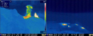 Ordinaria attività di sorveglianza e monitoraggio vulcanologico. Sorvolo in elicottero con osservazioni dal visibile e con ausilio di telecamera termica e sopralluoghi di terreno di personale INGV ed altre squadre. Inoltre, entro oggi sarà effettuato il censimento delle infrastrutture e strumentazioni danneggiate e relativo piano di ripristino.