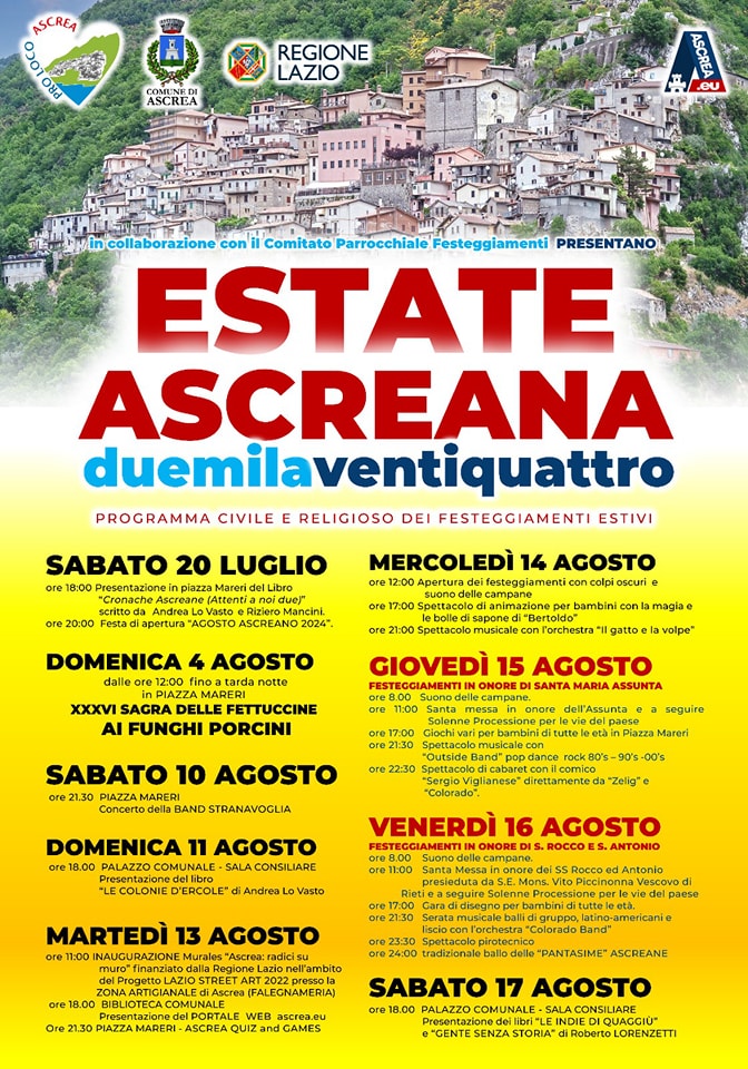 ASCREA – Ieri sera partenza in grande stile per l’estate ascreana 2024. Un piccolo borgo che fa le cose in grande. Ieri sera la festa di apertura del cartellone che si preannuncia ricco ed interessante. Di seguito il dettaglio in locandina di tutti gli eventi: