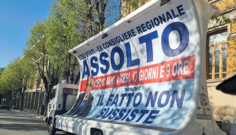 Avezzano – Tredici anni di calvario politico e morale non ripagano certo l’ex consigliere regionale Ezio Stati coinvolto suo malgrado in un meccanismo accusatorio risultato assolutamente infondato. Tanto rumore per nulla dunque. E a distanza di tanto tempo la sentenza di assoluzione per una diversità di capi di imputazione che lo vedevano coinvolto in procedimenti legati alla sua attività di consigliere regionale dell’Abruzzo. Fatti, istanze, dibattimenti per un processo lunghissimo che ha tolto qualche notte di sonno, ma che ora ha regalato al personaggio iconico la sua grande soddisfazione. E così da questa mattina spunta una vela itinerante per Avezzano, Ezio, con la sua originalità ancora una volta sorprende e stupisce tutti. E che sia all’orizzonte una nuova corsa politica? E’ probabile!