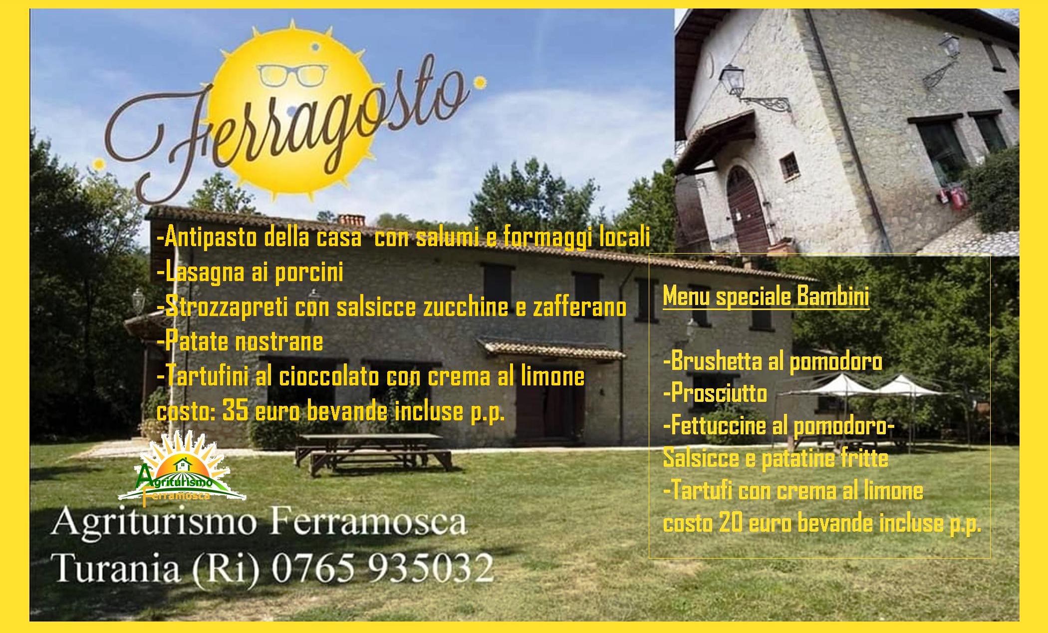 TURANIA – La giornata di ferragosto è ideale da trascorrere nella natura incontaminata. Comodamente raggiungibile dalla A24 uscita Carsoli Oricola, l’Agriturismo Ferramosca offre il meglio della buona tavola a Km zero, tanto spazio verde che trasporta la mente nel relax assoluto. E poi spazio al buongusto con i servizi di cucina, alle ampie camere con servizio di B&b, e spazio al menù di ferragosto presentato per soddisfare grandi e piccini. Il tutto con squisita accoglienza nei colori e nei sapori.