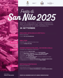 La Festa di San Nilo è il cuore identitario di Grottaferrata, un appuntamento che ogni anno ci ricorda le nostre radici e la nostra storia – afferma il Sindaco Mirko Di Bernardo –. L’edizione 2025 rappresenterà una novità ma anche una riconnessione con il passato, con uno splendido concerto nel Fossato dell’Abbazia e uno spettacolo pirotecnico che sarà l’unico protagonista a Piazzale San Nilo, dove potremmo ammirarlo tutti insieme, rinnovando il nostro spirito di comunità”.
