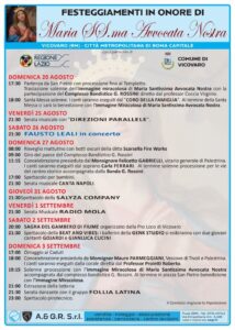 Vicovaro – Si è conclusa la prima settimana di Festeggiamenti in onore di Maria SS Avvocata Nostra. Le prime serate un successo. Per qualche giorno la festa si ferma ma il 31 agosto inizierà l’ultimo weekend di eventi imperdibili.