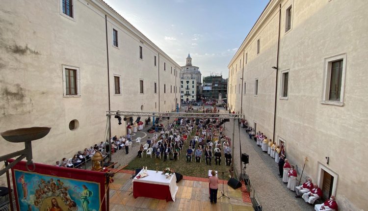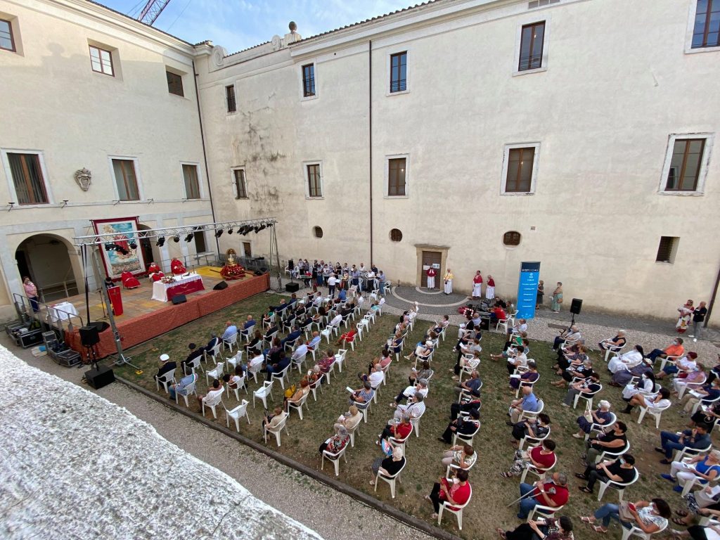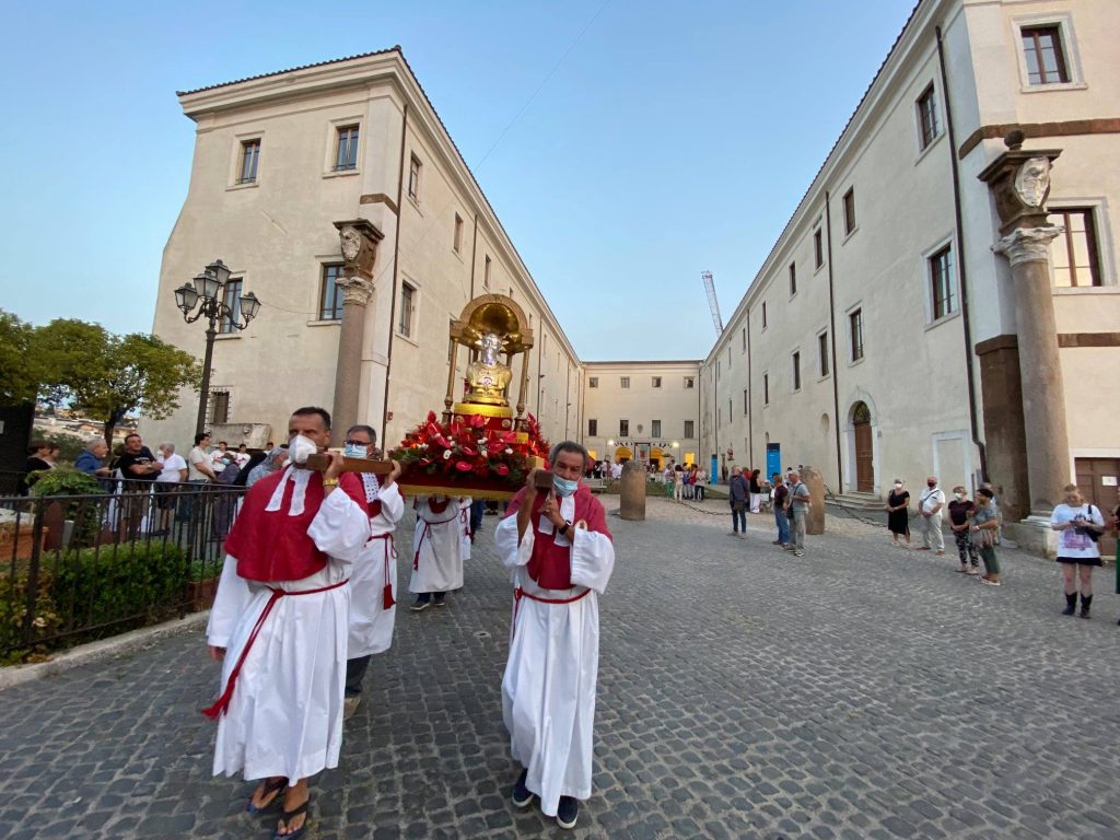 Zagarolo – Si è appena concluso l’appuntamento più importante dei festeggiamenti in onore del Santo Patrono di Zagarolo, San Lorenzo: la Ss. Messa si è svolta nella Corte di Palazzo Rospigliosi, rispettando tutte le misure anti contagio da Covid-19.