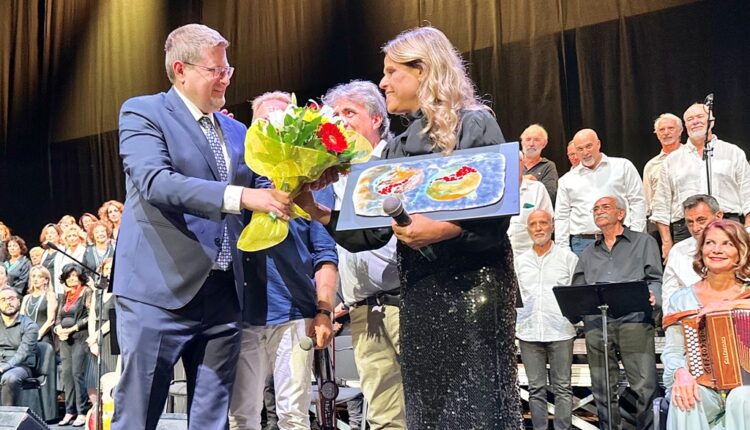 Alla fine del suo intervento, Santangelo ha consegnato il premio Gabriella Ferri alla cantante e attrice teatrale Tosca. Il riconoscimento, istituito nel 2018 dalla Fondazione Musica per Roma, celebra gli artisti delle arti contemporanee che riescono a rinnovare e a mantenere viva la tradizione popolare canora.